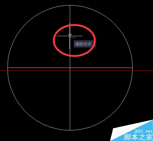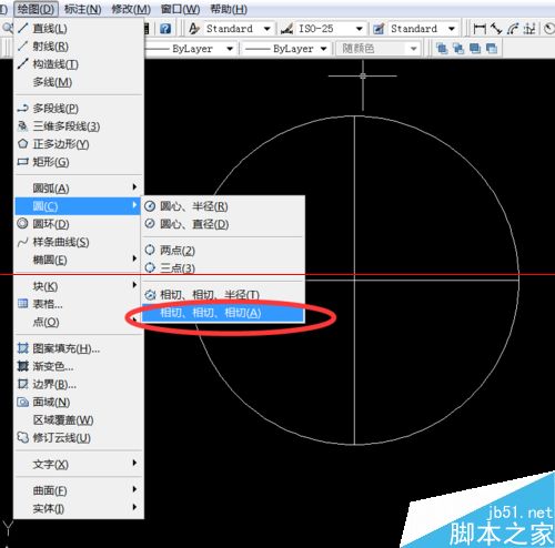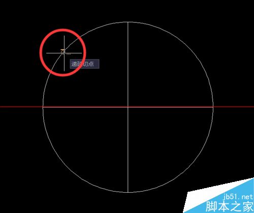 3、畫小圓,用繪圖——>圓——>相切,相切,相切,分別切圓和兩條直線,如此畫四個小圓。