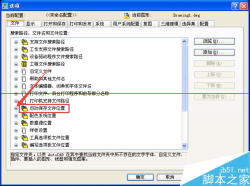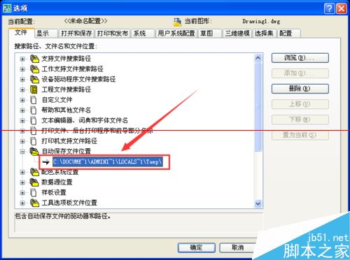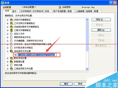 4、展開列表后就可以看到cad自動保存的路徑了,這時如果你想復制該路徑,先【點擊】該路徑,如圖所示底色變藍,再次【點擊】則會進入編輯模式如圖二,這時可以右鍵復制或ctrl+c。