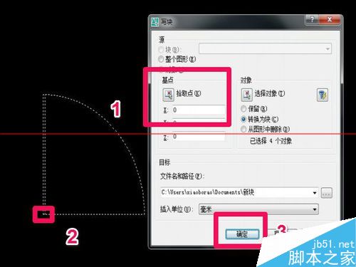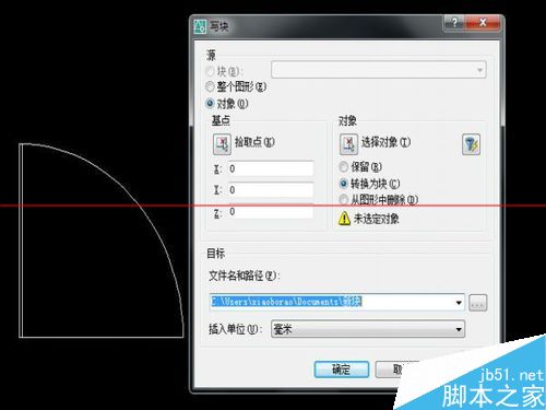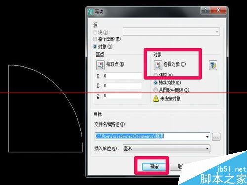4、在彈出的對話框中,我們點擊“選擇對象”,然后框選我們要定義的塊,如圖所示。