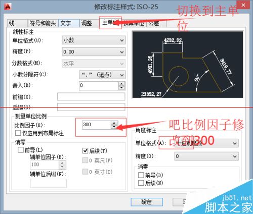 4、在樣式管理器中選擇主單位菜單頁,并吧測量單位比例從1調整到300