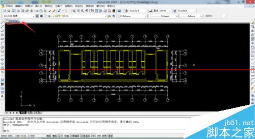 4、打開電腦上自己已經安裝好的CAD,這里小編以CAD2007為例,你會看到窗口欄,變成標簽的形式。