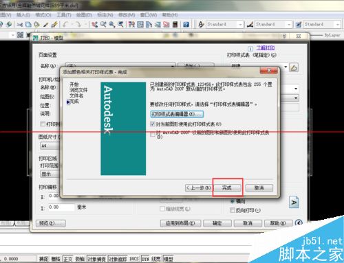 6.此時可點擊完成,就創立了新的打印樣式表,如果需修改線寬,可后面再修改,也可現在就點擊“打印樣式表編輯器”。