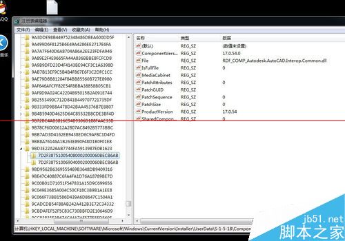18、同樣的,將帶有”autocad“、”CAD“、”20xxCAD“(xx指你安裝的版本號)、”7D2F“的鍵值進行刪除。(刪除前多多少少也瞄一眼,比如說那種一長串鍵值名稱中間剛好帶有這些字樣,但很明顯不屬于CAD相關的就不要刪除了)。