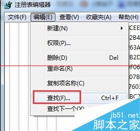 16、然后同時按下win鍵+R鍵,運行”regedit“打開注冊表編輯器,進行注冊表刪除。編輯--查找。(再強調下,刪除注冊表前請做好備份,畢竟稍一不小心刪錯了,把系統整崩潰了也是很憂傷的事。)