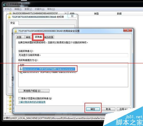 8、接下來進行高級安全設置界面。進入所有者界面,選擇你此時登錄的帳號,點擊確定,跳轉回前一級界面。