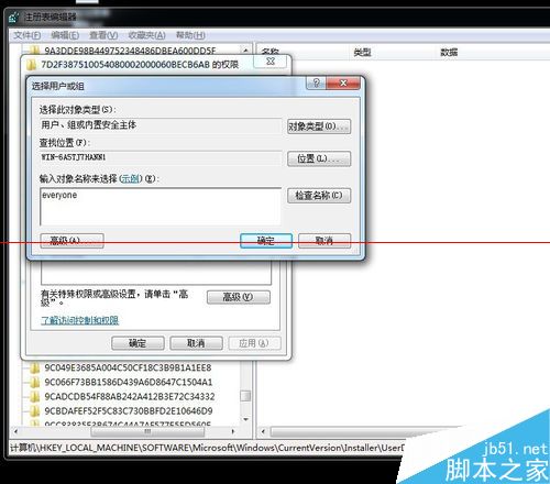 9、點擊“添加”,在最下面那個輸入對象名稱的文字框里輸入“everyone”,點擊確定。