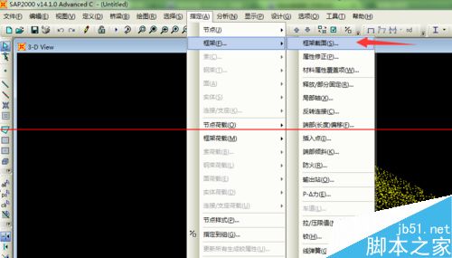 7、導入第一部分后的軟件會默認這一步導入的圖形為選中狀態,然后我們點擊“指定”——“框架”——“框架截面”