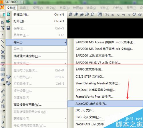 4、保存好之后我們打開SAP2000,單擊“文件”——“導入”——“AutoCAD.dxf文件”