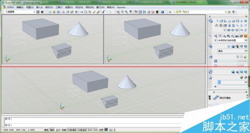 進入到操作界面后,CAD默認的繪圖區(qū),只有一個三維視口,為了更便捷地進行設(shè)計工作,我們可以繼續(xù)添加視口,我建議使用平面圖、立面圖、三維視圖三者結(jié)合、兩小一大的分配模式