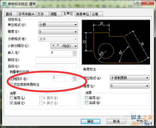 5、點擊 修改,彈出 修改標注樣式 窗口,選擇 主單位 ,找到 測量單位比例,調節比例因子