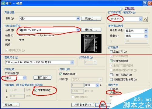 6、如何將dwg轉為pdf格式,和打印的方式一樣,就是把“打印機/繪圖儀”中的名稱改為“DWG TO PDF.PC3”就可以了,然后和打印一樣選擇圖形,然后按確定。