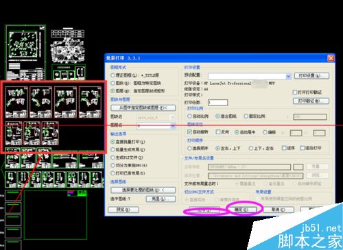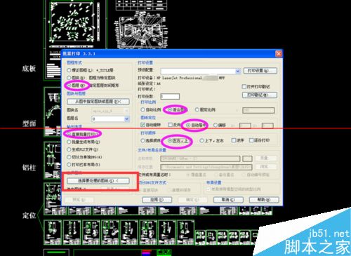 3.打印機確定好后頁面會切換如下圖狀態,然后將圖層(N),直接批量打印,適合居中,左右,上下選項欄勾選上,然后選擇要處理的圖紙。