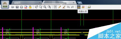 6、點擊上方菜單欄里的【測量長度】功能按鈕,在圖紙上任意選擇兩個點,可測試出兩點之間的長度,如下圖所示。