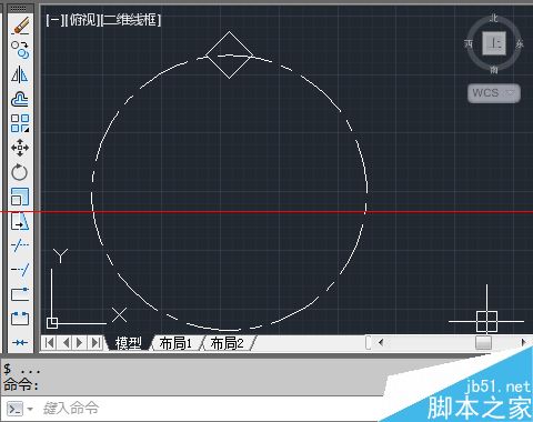 3、選擇中心點。這里我選擇輔助圓的圓心,左鍵單擊。