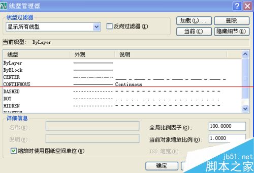 問題2:選擇菜單欄“格式”—“線型”彈出“線型管理器”對話框