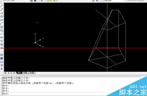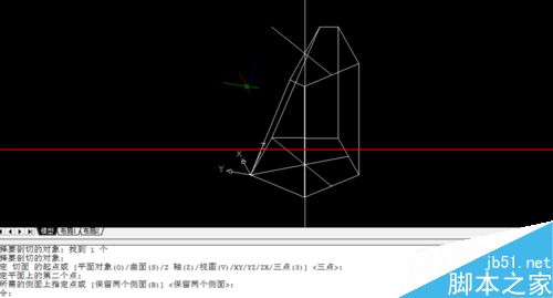 6、然后進入剖切命令,這里選定的兩點是用來確定與z軸平行的平面的,所以只要兩點就可以了,但是這兩點所確定的直線不能與z軸平行,否則命令不成功