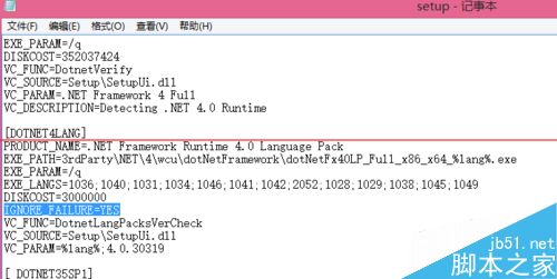 在圖中用快捷鍵Ctrl+f查找輸入DOTNET4LANG (1-2圖)2.在(3-4圖)下條輸入 IGNORE_FAILURE=YES
