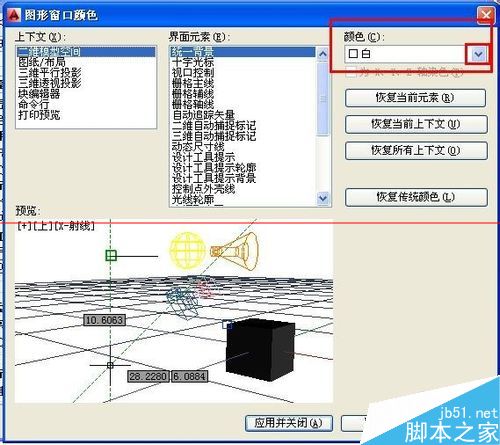 5、在圖形窗口顏色對話框中,我們可以對顏色進行切換,點擊顏色選項框