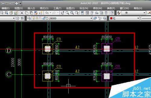 2、然后我們就可以打開cad圖紙進行標注了,如圖所示,我們進行這四個樁的坐標的標注