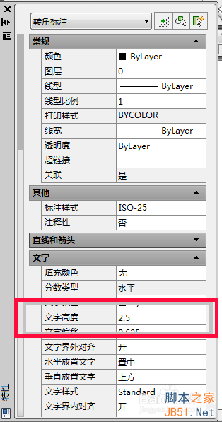 第五:在特性窗口中,找到文字欄,把其中的文字高度的數值改大一些即可。
