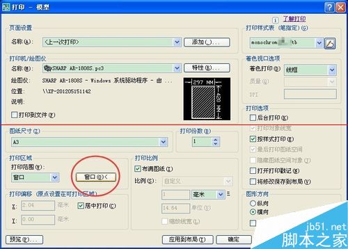 7、然后點擊窗口進行拉選需要打印的圖框。