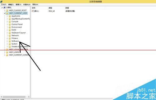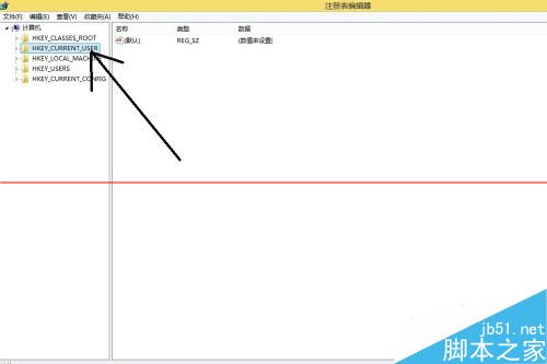 3、在注冊表的左邊選擇“HKEY_CURRENT_USER",并用鼠標左鍵雙擊。
