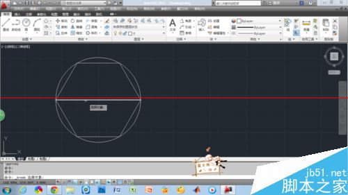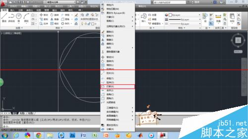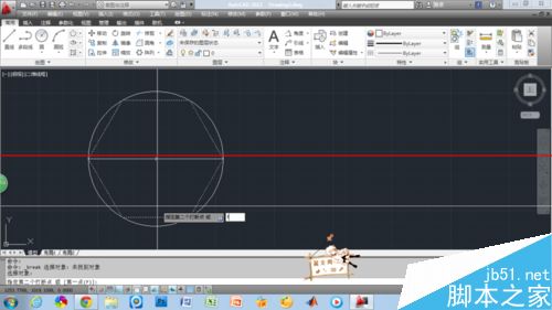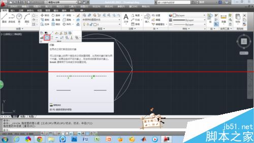 4、對(duì)圓使用打斷命令時(shí),將沿逆時(shí)針?lè)较虬训谝稽c(diǎn)到第二點(diǎn)的部分刪除。如圖所示。