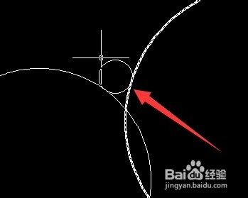 當你的十字光標移到圓的周圍時,十字光標會自動捕捉到圓的邊線,在兩個圓上分別鼠標左鍵點擊一下