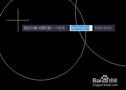 此時你要指定與圓的切點,當然你也可以輸入你要相切點的坐標,但小編建議初學者只要指定與圓的切點即可