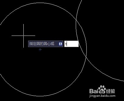 此時會提示指定圓心或坐標,此時鍵入另一個命令t(相切),之后點擊回車