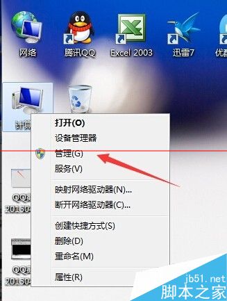 1、首先要確認“Server”服務已經設置為“自動啟動”,在桌面上右鍵點擊“計算機”找到“管理”并點擊打開。