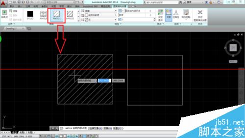 6、具體該怎樣填充呢?首先以剖面線為例,我們選擇ANSI31形狀的線條,也就是我們常說的“陰影線”。選定之后點擊左邊的框框內部空白區域,可以看到圖案已經填充上去。