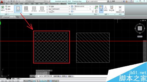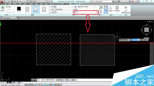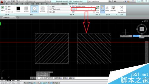 8、畫陰影線是,如果兩個不同零件接觸在一起,為了表示區別,需要繪制不同的陰影線,一般是繪制角度不同的線型,怎樣修改角度呢?如下圖,在紅色框框范圍內修改角度,我們修改為90度左右試試。下圖右框是91度,左框是0度,可以看出陰影線方向近乎垂直。