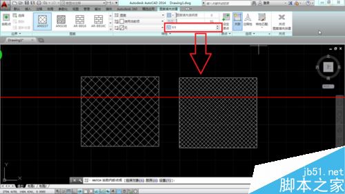 7、有時需要根據圖紙大小調整陰影線密度,怎么調整呢?在下圖所示紅色框框范圍內修改數值,數值越小,線條越密。下圖右框是數值0.5,左框是1.0,可以很顯然地看出差別。