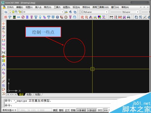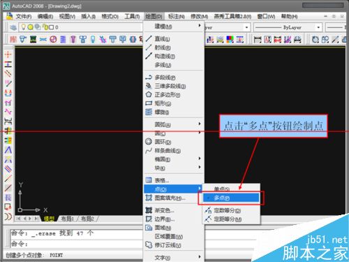 2、我們先繪制一些點,選擇繪圖-點-多點命令。