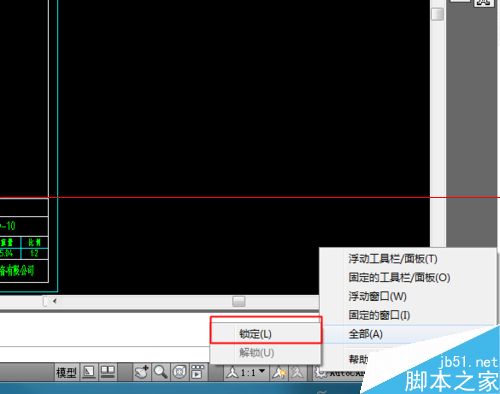 3、將鼠標圖標移動至全部位置,直接生成菜單,選擇“鎖定”。這時你的界面就被鎖定了(只有在界面沒有鎖定的情況下可選擇鎖定)
