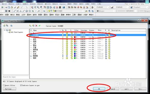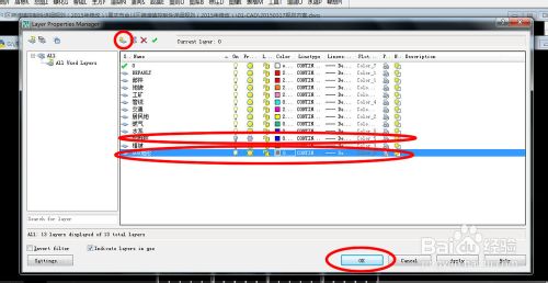 在CAD中打開原始地形,在圖層控制菜單中關(guān)閉并凍結(jié)不需要的圖層,如圖所示圖廓層。新建500地形圖層,設(shè)置圖層顏色為8號(hào)色,點(diǎn)擊ok。