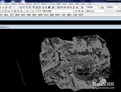 將500地形圖層設(shè)置為當(dāng)前圖層,并在該圖層畫一條多段線(沒(méi)有寬度屬性)。