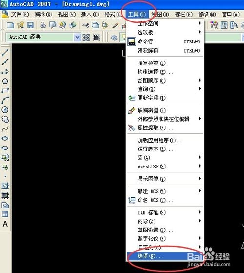 在菜單欄上,找到“工具”,點擊。——“選項”。