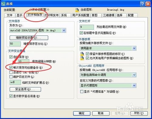 選擇“打開和保存”——在“文件安全措施”中,第二個就是“每次保存均創(chuàng)建備份”,講的就是".bak"文件。