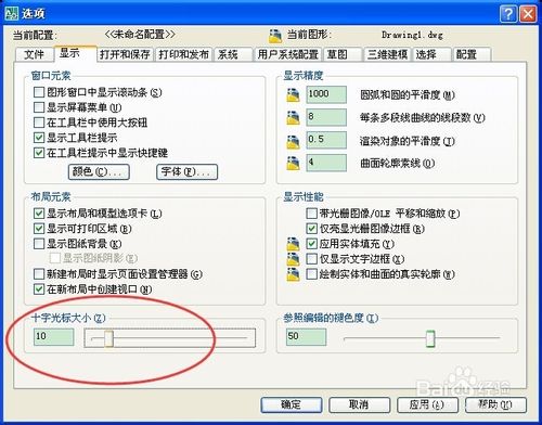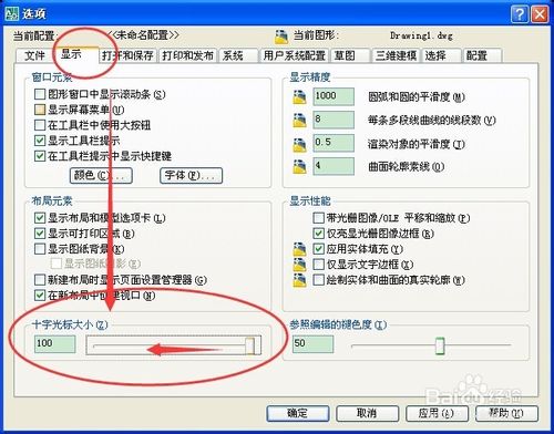 在“顯示”中,下方有個(gè)“十字光標(biāo)大小”,可以修改它的大小。