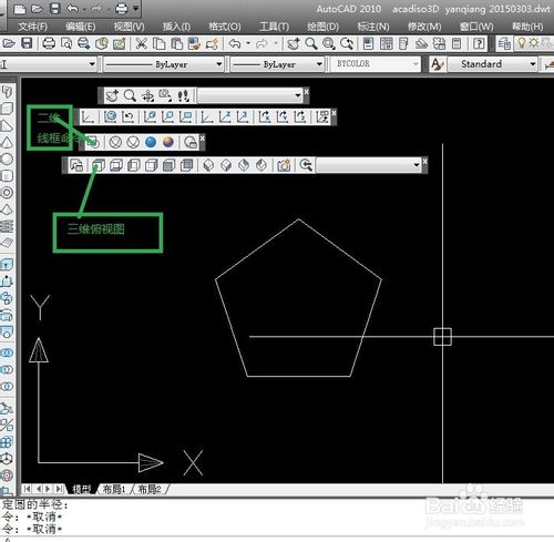 三維建模繪圖環境下,打開二維線框和三維俯視圖模式。