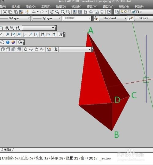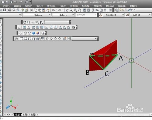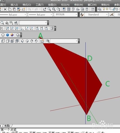 調整視圖方位,理由剖切命令中3點剖切,選acd三點剖切,