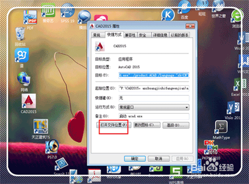 右鍵點(diǎn)擊”CAD2015",或者是其他版本的圖標(biāo)。點(diǎn)擊“屬性”。