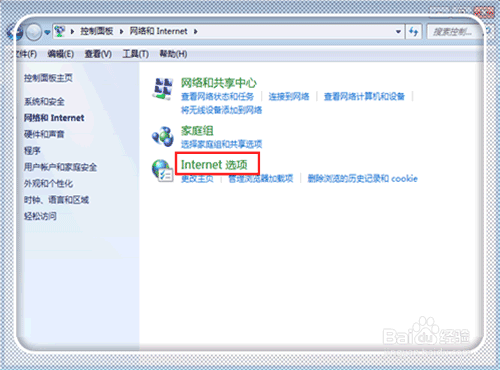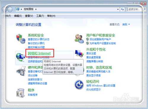 點(diǎn)擊“網(wǎng)絡(luò)和internet”。