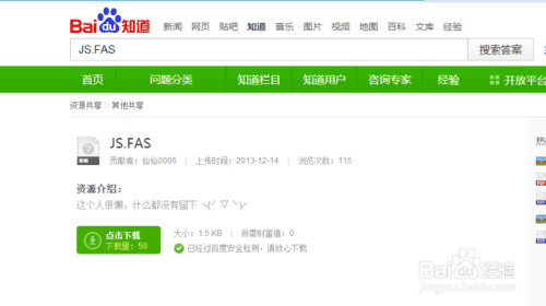 在瀏覽器中復(fù)制引號內(nèi)內(nèi)容“JS.FAS",粘貼到瀏覽器中,進(jìn)行搜索,然后下載該文件。