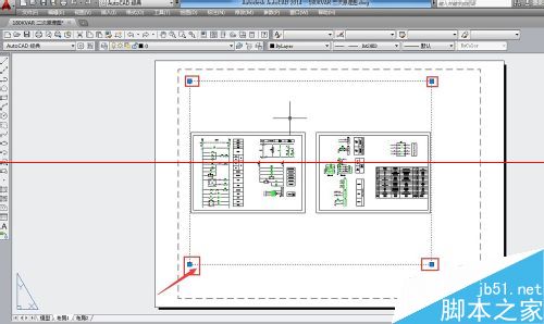 7、在圖紙空間單擊實心框,在四個頂點會出現藍塊,用鼠標點住其中的藍塊會隨著鼠標移動方向拉伸