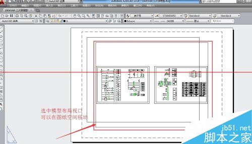 6、在圖紙空間選中模型布局視口,可以用鼠標移動位置