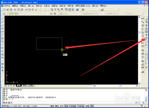 3、點擊旋轉(zhuǎn)命令,選取旋轉(zhuǎn)中心