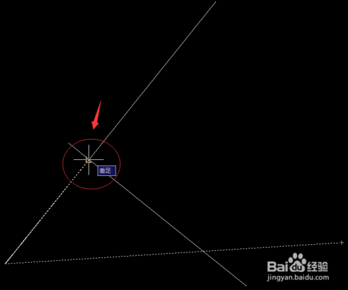 5、移動光標到要垂直的直線垂足處,然后點擊鼠標左鍵完成旋轉操作。